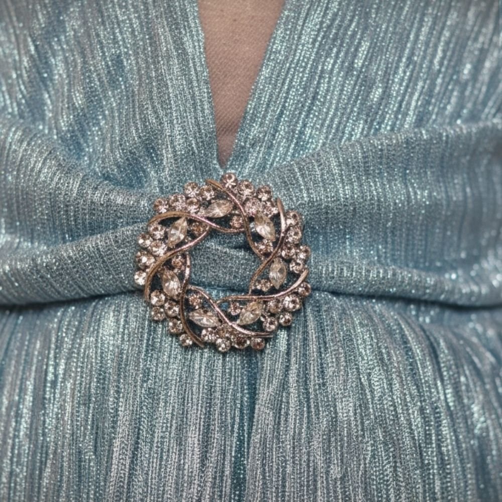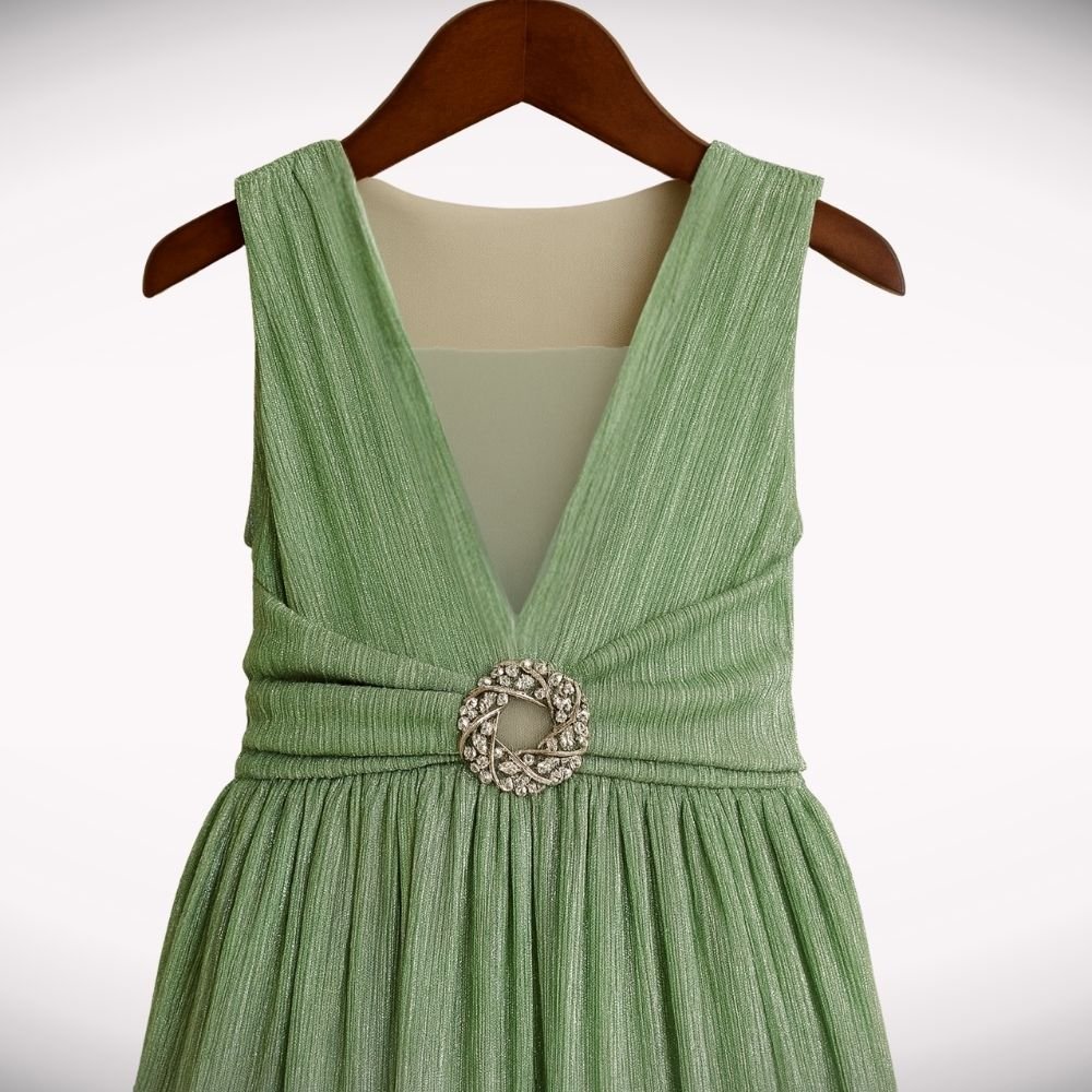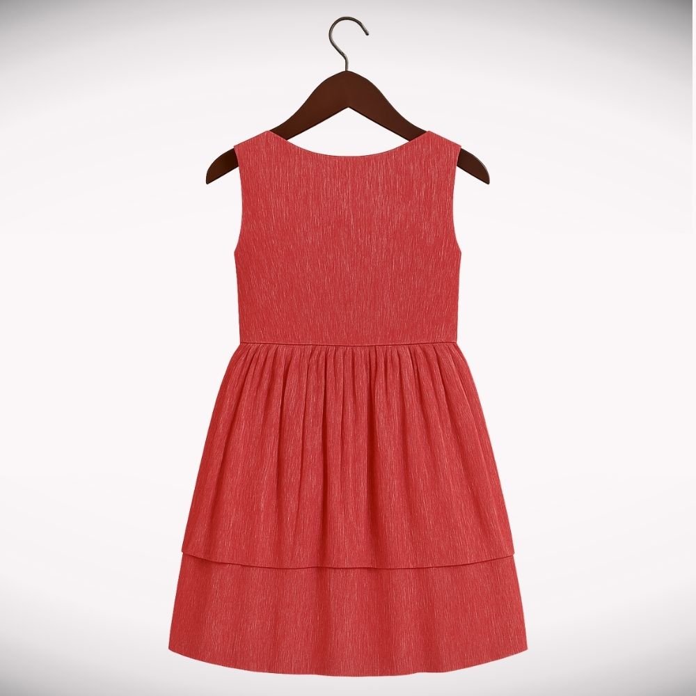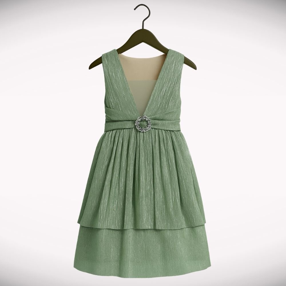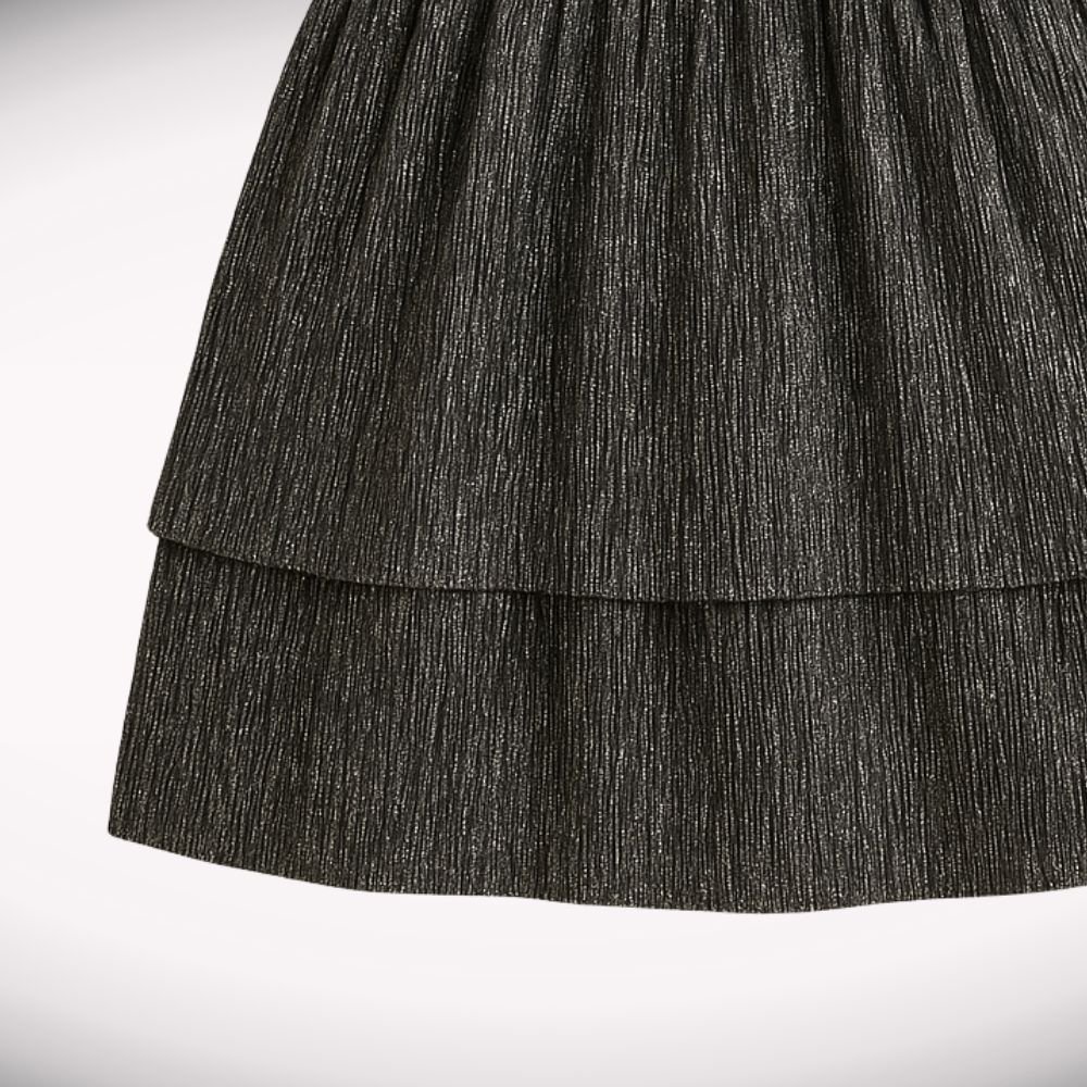 Shimmer meets sophistication in this fit & flare party wear dress for girls, crafted in moonlight georgette with butter crepe lining. The tiered skirt with detachable can-can allows versatile styling, while the removable rhinestone buckle adds just the right touch of sparkle.
